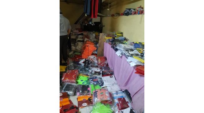 İZMİR (İHA) - İzmir'de, Beşiktaş ve Galatasaray takımlarının formaları ile çeşitli ünlü markaların isimlerini taşıyan yarım milyon değerinde 5 bin 261 parça taklit ürün ele geçirilirken, 3 şüpheli hakkında işlem yapıldı.
