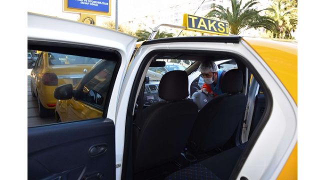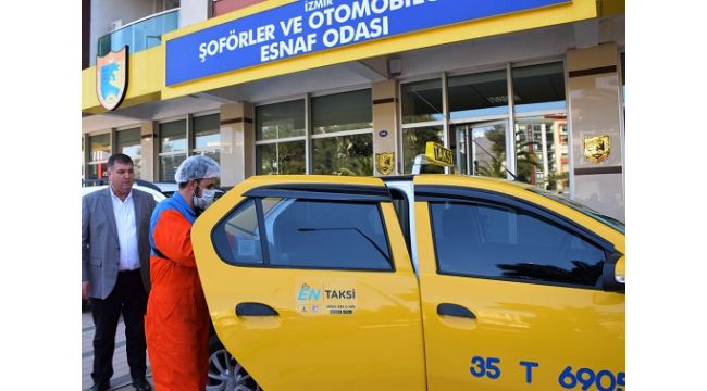 İzmir'de taksiler korona virüs riskine karşı ilaçlanıyor. İzmir Şoförler ve Otomobilciler Esnaf Odası Başkanı Celil Anık, "Hastalıktan korunmak için hijyen kurallarına uyulması yönünde de üyelerimizi bilgilendiriyoruz" dedi.