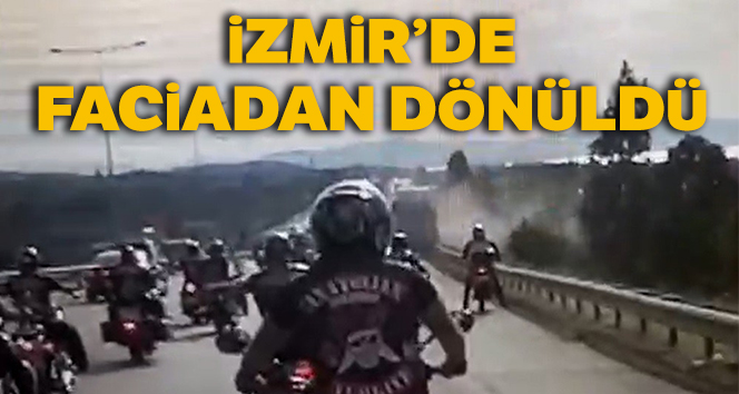 İzmir’de otoyolda seyreden bir tır, motosiklet konvoyunu sollamak isterken kontrolünü kaybetti ve bariyerlere çarparak durabildi.