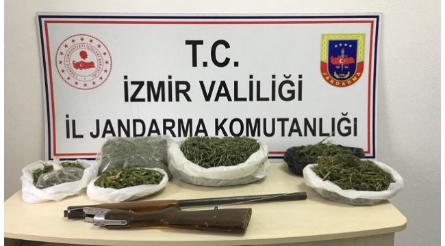 İzmir'de uyuşturucu ticareti yaptığı iddia edilen 7 zanlı operasyonla gözaltına alındı. İl Jandarma Komutanlığı ekipleri, uyuşturucu ticareti yaptığı belirlenen kişilere yönelik Buca, Tire ve Bayındır ilçelerinde operasyon düzenledi. Adreslerdeki aramalarda, 4 bin 100 gram esrar, ruhsatsız av tüfeği ve hassas terazi ele geçirildi. Operasyonda Y.K, B.G, O.K, M.K, M.G, A.G. ve D.G. yakalandı. : Anadolu Ajansı / Zeynep Çelikkol