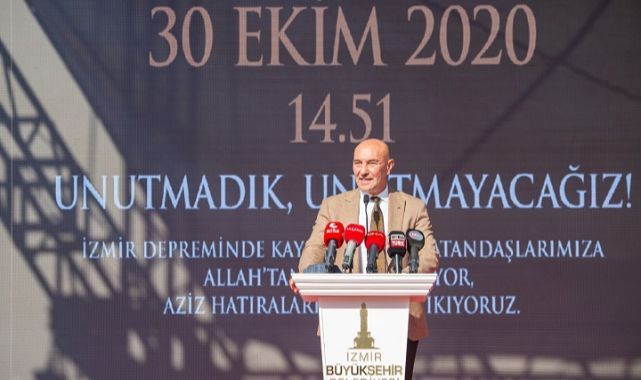 30 Ekim depreminde hayatını kaybeden 117 kişi İzmir’de düzenlenen iki ayrı törenle anıldı. İzmir Büyükşehir Belediyesi tarafından depremzedeler için Türkiye’de ilk kez İzmir’de hayata geçirilen Halk Konut projesinin ilk uygulaması olan Dilber Apartmanı’nın önündeki törende konuşan Başkan Tunç Soyer, “Dilber Apartmanı ile başlayan Halk Konut projesinin büyüdüğünü ve bu noktaya geldiğini görmek gurur verici. Mart ay içerisinde anahtarları teslim edeceğiz” dedi.