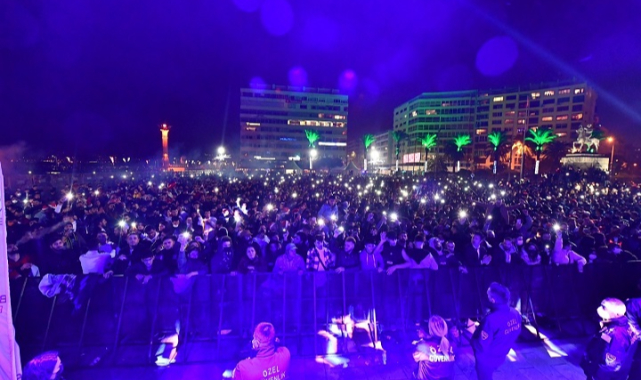Cumhuriyet Meydanı'ndaki etkinlik geri sayımın ardından İzmir marşı ile sona erdi.