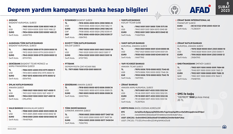 Açıklamada, bölgelerde 96 bin 670 personelin görev yaptığı, 70 Bin 818 çadır kurulduğu belirtildi.Açıklamada, şu bilgilere yer verildi:"Bölgede AFAD, PAK, Jandarma, DAK, Milli Savunma Bakanlığı, UMKE, İtfaiye, Milli Eğitim Bakanlığı, Güven, STK ve Gönüllüler, Güvenlik, Yerel Destek Ekipleri'nden görevlendirilen personel ile uluslararası arama kurtarma ekiplerinden oluşan toplam arama ve kurtarma personeli sayısı 79 bin 110'dur. Dışişleri Bakanlığı ile yapılan görüşmeler neticesinde diğer ülkelerden yardım için gelen 5 bin 309 personel afet bölgesine sevk edilmiştir.Afet bölgesine başta ekskavatör, çekici, vinç, dozer, kamyon, arazöz, treyler, greyder, vidanjör ve benzeri iş makineleri olmak üzere toplam 5 bin 402 araç sevk edilmiştir. Afet bölgelerine, 31 vali, 70'in üzerinde kaymakam ile 68 il müdürü görevlendirilmiştir.Hava Kuvvetleri, Kara Kuvvetleri, Sahil Güvenlik ve Jandarma Genel Komutanlığına bağlı toplam 104 hava aracı ile İstanbul, Ankara ve İzmir'den bölgeye personel ve malzeme sevkiyatı için hava köprüsü kurulmuştur. Bölgeye personel, malzeme sevkiyatı ve tahliye amacıyla Deniz Kuvvetleri Komutanlığı tarafından 9, Sahil Güvenlik Komutanlığı tarafından 1 olmak üzere toplam 10 gemi görevlendirilmiştir."
