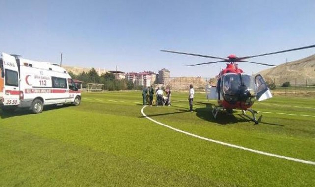Malatya'nın Darende ilçesinde, kalp krizi geçiren Hatice Yaman (49), ambulans helikopterle Eğitim ve Araştırma Hastanesi'ne sevk edildi.