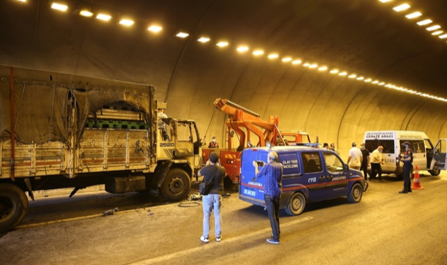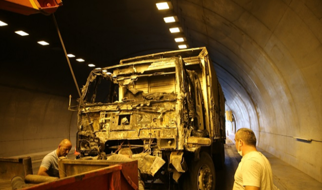 Öte yandan güvenlik kamerası kayıtlarını inceleyen ekipler, otomobilin tünele girmeden önce henüz belirlenemeyen nedenle durduğunu, bu sırada arkadan gelen kamyonun otomobile çarpıp tünel girişine kadar sürüklediğini ve otomobilin alev aldığını belirledi.