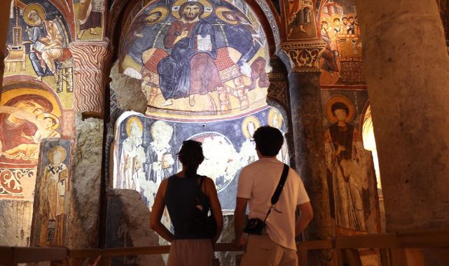 UNESCO Dünya Mirası listesindeki Göreme Açık Hava Müzesi'nin içinde yer alan Karanlık Kilise, İncil ve Tevrat'ta yer alan bazı sahnelerin 11. yüzyılın sonlarında duvar ve kubbelerine yansıtıldığı canlı renklerini muhafaza eden freskleri ile ön plana çıkıyor.Uzun yıllar kapalı kaldıktan sonra restorasyon çalışmalarının ardından 1990'da ziyarete açılan tarihi yapı, "Doğum", "Beytüllahim'e yolculuk", "Vaftiz", "Lazarus'un diriltilmesi", "Kudüs'e giriş", "Üç müneccimin tapınması", "Son akşam yemeği" ve "İsa çarmıhta" başta olmak üzere çok sayıda sahnenin yer aldığı freskleri ile turistlerin dikkatini çekiyor.Tüf kayaya oyulmuş haç planlı kilise, merkezi kubbe, dört sütun ve üç apsisten oluşuyor.İl Kültür ve Turizm Müdürlüğü verilerine göre, Karanlık Kilise'de 2016 yılında 58 bin 120, 2017'de 59 bin 91, 2018'de 116 bin 659, 2019'da 120 bin 908, 2020'de 33 bin 209, 2021'de 63 bin 323, 2022'de 172 bin 168, 2023'te 163 bin 941, 2024'te 156 bin 534, bu yılın 7 ayında ise 92 bin 644 ziyaretçi ağırlandı.Nevşehir Turist Rehberleri Odası Başkanı Özay Onur, AA muhabirine, kilisenin asırlar önce metal aletlerle uzun uğraşlarla oyulan kaya yapının içine imar edildiğinin bilindiğini söyledi.O dönem manastır olarak kullanılan Göreme Açık Hava Müzesi'nin içinde ayrı birim olarak yer alan kilisenin, ziyaretçileri adeta zamanda yolculuğa çıkardığını anlatan Onur, şöyle konuştu:"1980-1990 yıllarında 10 yıl boyunca temizlik ve restorasyon çalışması yapıldı. Sanki 12. yüzyılda zaman dondurulmuş gibi korunmuş şekildedir. Buradaki kilisenin varlığı çok sonraları fark ediliyor. Bu süreçte de doğal olarak korunmuş. İçinde sahneleri kronolojik olarak görüyoruz. Kubbelere peygamberler ve Hz. İsa'nın figürleri resmedilmiş. Bu kilisenin en büyük özelliği fresklerin net olması ve tazeliğini korumasıdır. Göreme Açık Hava Müzesi'nin en önemli yapısı sayılan Karanlık Kilise, alanda kendisine ayrılan özel girişi sonuna kadar hak ediyor. Karanlık Kilise canlı freskleri sayesinde diğerlerinin arasından sıyrılıyor. Onu korumak sadece müze yetkililerinin değil, tüm insanlığın ortak sorumluluğudur."