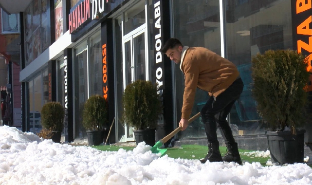 Muş'ta iş yerinin giriş kapısında biriken karı temizleyen 18 yaşındaki Mikail Mete, 8 katlı binanın çatısından düşen buz kütlesinin altında kalmaktan son anda kurtuldu.