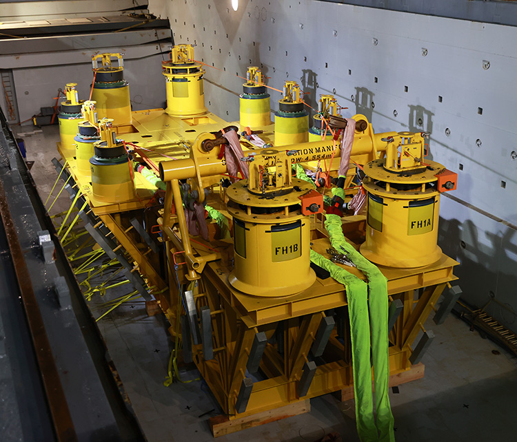 Bakanlıktan yapılan açıklamaya göre, doğal gazı yaklaşık 170 kilometre açıktan karaya taşıyacak boru serimi tamamlanırken denizin 2 bin 200 metre altındaki enerji üssü kurma çalışmaları da devam ediyor.Türkiye Petrolleri Anonim Ortaklığı (TPAO) tarafından "Peçenek" adı verilen ekipman Filyos Limanı'na getirildi. Ardından, Karadeniz gazını kuyulardan toplayıp ana boru hattına bağlayacak 280 tonluk dağıtım haznesi, limandan denize indirmenin yapılacağı Sakarya Gaz Sahasına gemiyle taşındı.Ekipman, özel vinçler ve su altı robotlarının yardımıyla 20 saat çalışmanın ardından denizin 2 bin 200 metre altına indirildi.