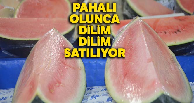 Yaz aylarının vazgeçilmez meyvesi karpuz Bilecik’teki pazar tezgahlarında yerini alırken, fiyatın yüksek olması sebebiyle dilim dilim satılıyor.