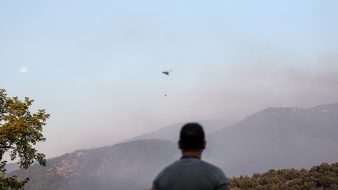 Akşam havanın kararması nedeniyle havadan yapılan müdahaleye ara verildi. Ekipler, gece boyu karadan alevlerle mücadele etti.Sabahın ilk ışıklarıyla 17 helikopter yeniden devreye alındı. Edremit Koca Seyit Havalimanı'ndan havalanan helikopterler, Kızılkeçili Mahallesi mevkisinde Orman Bölge Müdürlüğüne ait yangın havuzundan ve denizden su alarak müdahalede bulundu.