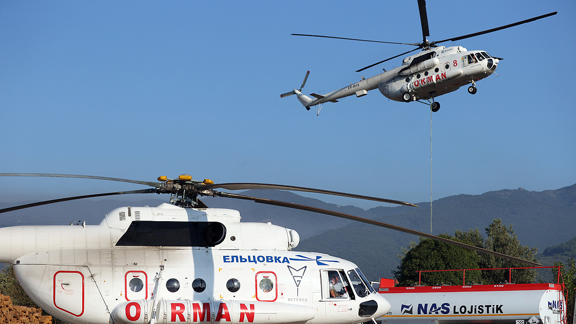 Helikopterler yangın havuzundan ve denizden su aldı