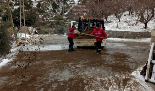 Kemalpaşa Belediyesi ekipleri, bir yandan kar yağışı nedeniyle özellikle yüksek kesimlerdeki mahallelerde yolların açık kalması için çalışırken, bir yandan da günlük hayatın olumsuz etkilenmemesi için çaba gösteriyor. Kar yağışı sebebiyle yollarda buzlanma olmaması için yoğun bir çalışma yapılıyor.MAHSUR KALAN 8 ARAÇ KURTARILDIKemalpaşa Belediyesi Fen İşleri Müdürlüğü’ne bağlı ekiplerinin, kardan kapanan yüksek kesimlerde başlattığı kar temizleme çalışmaları kapsamında, Yeni Kurudere Mahallesi’nde mahsur kalan 8 araç ve sürücüleri belediyeye iş makinesi ve araçları ile kurtarılırken İzmir Büyükşehir Belediye ekipleri ise yollarda tuzlama çalışması gerçekleştirdi.50 TON TUZ KULLANILDIEtkili olan kar yağışının ardından yollarda oluşan buzlanma ile ilgili Kemalpaşa Belediyesi ekipleri, gerek rakımı yüksek mahallelerde gerekse diğer mahallelerdeki farklı noktalarda 3 ayrı ekiple tuzlama gerçekleştirerek çalışmalarını halen sürdürüyor. Bu iş için bugüne kadar yaklaşık 50 ton tuz kullanılarak ilçede yaşanılabilecek herhangi bir olumsuzluğun önüne geçildi.“EKİPLER TEYAKKUZ HALİNDE OLACAK”Kemalpaşa Belediye Başkanı Rıdvan Karakayalı, özellikle ilçenin yüksek kesimlerinde etkili olan kar yağışının yanı sıra oluşan buzlanmaya karşı da vatandaşları uyararak araçlarda kar lastiği ile zincir bulundurulmasına yönelik uyarısını yineledi. Başkan Karakayalı, ekiplerin 24 saat esasına göre çalıştıklarını, vatandaşların mağdur olamamaları için çalışmalarını sürdürdüklerini ve ekiplerin devamlı teyakkuz halinde olacağını ifade etti.