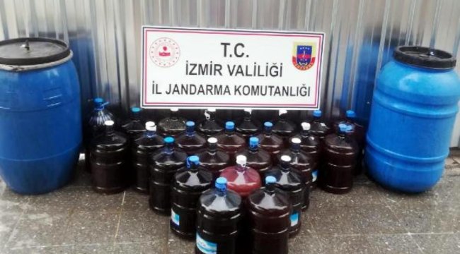İZMİR'in Kemalpaşa ilçesinde jandarmanın düzenlediği operasyonda 880 litre kaçak üretim şarap ele geçirildi.