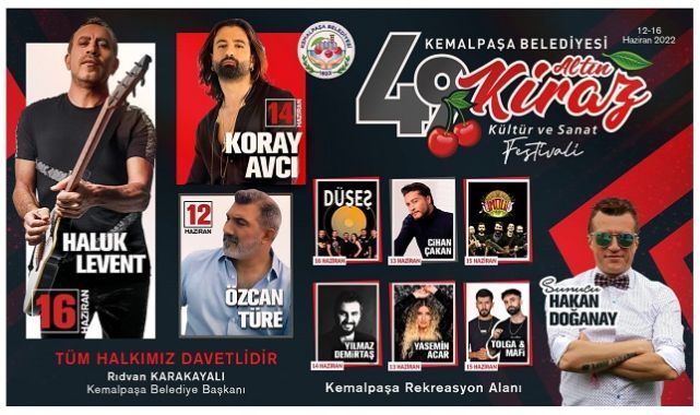 Kemalpaşa Belediyesi’nin pandemi nedeniyle iki yıldır gerçekleştiremediği, Kemalpaşa Altın Kiraz Kültür ve Sanat Festivali’nin 49’ncusu, bugün akşam saat 20.00’de gerçekleştirilecek açılış konuşmaları ile başlayacak.