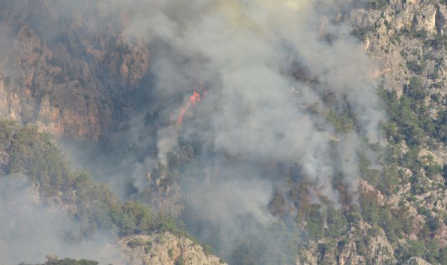 Antalya'nın Kemer ilçesindeki orman yangını sürüyor. yangını söndürme çalışmaları, gece görüşlü helikopterler ve karadan müdahaleyle sürüyor. Bölgenin sarp arazi yapısı karadan yapılan çalışmaları güçleştiriyor. Yayılma eğilimi kalmayan yangının söndürülmesi için ekipler tüm gücüyle sahada. Hava gücü 4 günde 1963 sorti yaptı.