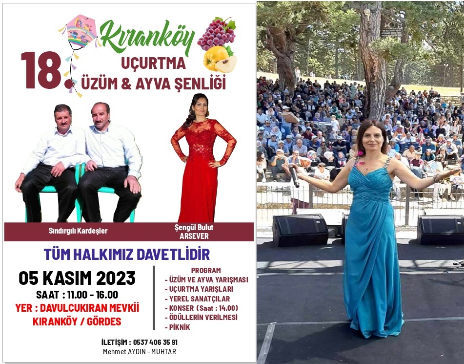 Kıranköy Muhtarı Mehmet Aydın, “Şenlik 5 Kasım Pazar günü saat 11 de başlayacak. Uçurtma yarışmalarıya devam edecek. Türk Halk Müziğinin güçlü sesi Şengül Bulut Arsever ve Yerel sanatçıların da konser vereceği şenlik mahallenin davulcukıran mevkiinde yapılacak.” dedi.