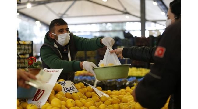 Esnafın haftada üç gün tezgah açtığı Hatay Pazaryerinde düzenli dezenfekte çalışmaları yürüten Konak Belediyesi ekipleri, esnafı ve vatandaşı virüse karşı alabilecekleri önlemler konusunda bilgilendiriyor. Pazaryerindeki zabıta noktasından yapılan anonslar ile esnafa maske ve eldiven kullanması hatırlatılırken, vatandaşlardan da herkesin sağlığı için duyarlı olmaları ve alışverişlerini el ile seçerek yapmamaları isteniyor. Meyvenin ve sebzenin en tazesini alabilmek için pazarları tercih eden Konaklılar, belediye görevlilerinin de hatırlatması ile alışverişlerinde maske ve eldiven kullanıyor. Pazarcı esnafı da uyarıları dikkate alarak tezgâhlarından alışveriş yapan vatandaşlardan ürünleri el ile seçmemelerini isteyerek torbaları müşteriler için kendileri dolduruyor.
