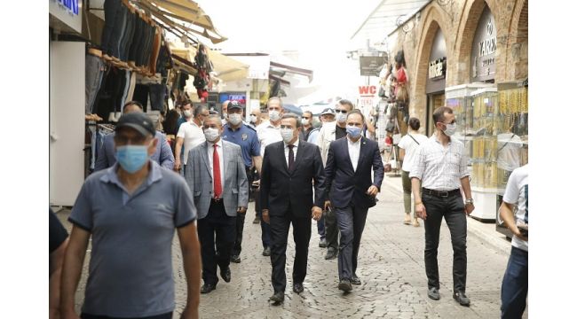 İçişleri Bakanlığının 81 İl Valiliğine gönderdiği Covid-19 konulu ek genelge kapsamında İzmir Konak’ta da büyük kapsamlı bir Koronavirüs denetimi yapıldı. İzmir Valisi Yavuz Selim Köşger’in katılımıyla yapılan denetimlere Konak Kaymakamı Mehmet Eriş, Konak Belediye Başkanı Abdül Batur, Konak İlçe Emniyet Müdürü Vekili Vedat Yaylalı da eşlik etti.