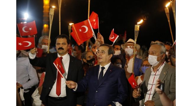 30 Ağustos Zafer Bayramı’na saygı için düzenlenen yürüyüş için Alsancak Türkan Saylan Kültür Merkezi önünden bir araya gelen korteje katılanlara Türk Bayrakları dağıtıldı. Alkışlarıyla destek olan esnaf da unutulmayarak bayraklar ve Atatürk kartpostalları armağan edildi. Cumhuriyet ateşini simgeleyen meşaleler taşıyan kortej, sosyal mesafe ve maske kuralına uygun olarak Gündoğdu Meydanı’ndan Cumhuriyet Meydanı’na yüründü. Yürüyüş sırasında sosyal mesafenin korunması ve maske kullanımı için sık sık anons yapıldı. Evleri yürüyüş güzergahında olan vatandaşlar da balkonlara çıkarak alkış ve bayraklarla 30 Ağustos coşkusuna katıldı. Gazi Heykeli önünde Konak Belediye Başkanı Abdül Batur’un konuşması ile sonlanan Zafer Yürüyüşü, İzmirlilere gurur yaşatırken pandemi kurallarına uyularak yapılan örnek bir Milli Bayram kutlaması olarak hafızalara kazındı.