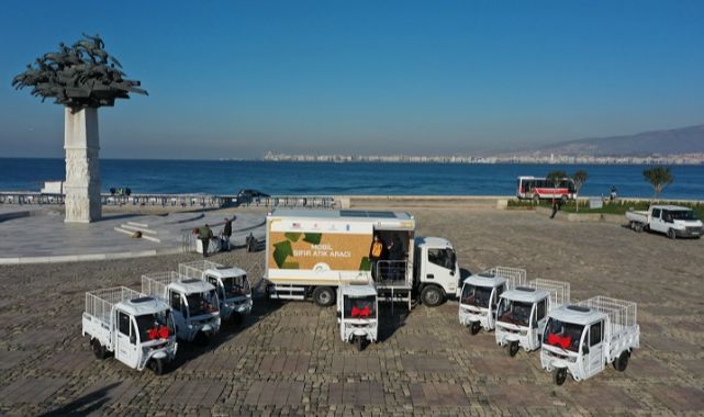 ‘Kapsayıcı Sıfır Atık Yönetimi ile Sosyal Uyumun Güçlendirilmesi Projesi’ kapsamında hibe alan Konak Belediyesi, 1 adet Mobil Atık Toplama Kamyonu ve 10 adet elektrikli triportörü araç filosuna kattı.