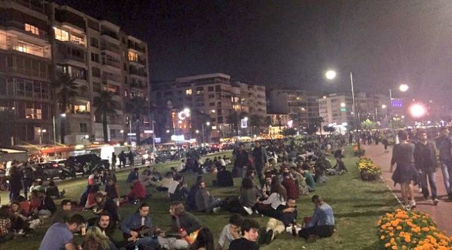 İzmir'de uzun bir aradan sonra hafta sonu sokağa çıkan vatandaşlar, Kordonboyu'nda sosyal "mesafe kuralı"ndan uzak bir görüntü oluşturdu. Yeni tip koronavirüs (Kovid-19) salgınını kontrol altına almak amacıyla uygulanan hafta sonu sokağa çıkma kısıtlamalarının sona ermesiyle vatandaşların birçoğu dışarıda vakit geçirmeyi tercih etti. Güneşin batmasıyla Alsancak semtindeki Kordonboyu'nda buluşan vatandaşlar çimlerin üzerinde zaman geçirdi. Saatin ilerlemesiyle kalabalığın oluştuğu Kordonboyu'nda vatandaşların sosyal mesafe kuralına dikkat etmediği ve birçoğunun da maske takmadığı gözlendi. Birbirlerine yakın oturan ve maskesi bulunmayan vatandaşları polis ekipleri uyardı. Özellike yaz aylarında binlerce kişinin uğrak noktası olan Kordonboyu'nda Kovid-19'la mücadele tedbirleri kapsamında sosyal mesafe kuralına uyulması için "çemberli sosyal mesafe uygulaması" başlatılmıştı. :