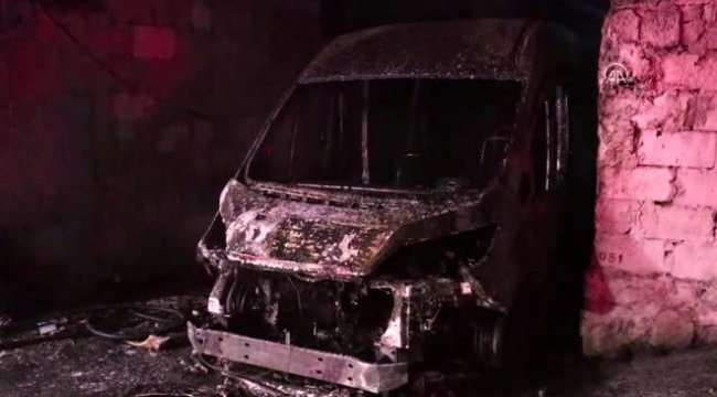 Kundaklandığı iddia edilen servis minibüsü kullanılamaz hale geldi
