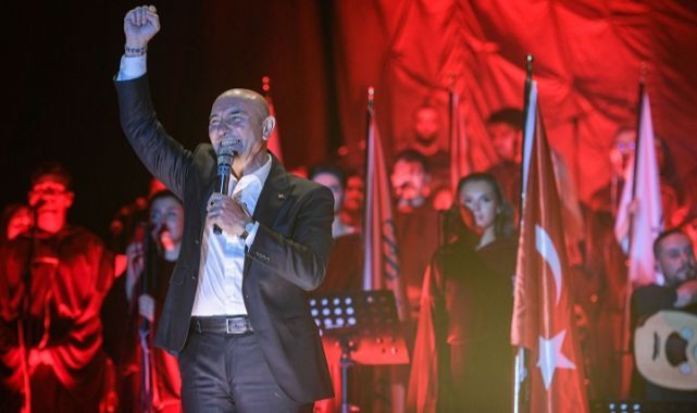 Coşku Kültürpark Çim Alan’da Tan Taşçı konseriyle devam etti. İzmir Marşı ile başlayan gecede İzmirlileri “9 Eylül İzmir’in kurtuluşu, savaşın son günü, barışın ilk günü. 100 yıldır barış içinde yaşıyorsak 9 Eylül’de başladı. İzmir kurtuluşun ve kuruluşun şehri. İzmir cumhuriyetin ve demokrasinin en sağlam bekçisi. İzmir dağlarında çiçekler açan, eğlencesini, neşesini yitirmiş bu coğrafyada antidepresandır, ilaçtır, vitamindir. 9 Eylül ve İzmir bizim namusumuzdur, şerefimizdir. Son nefesimize kadar 9 Eylül’e İzmir’e sahip çıkacağız. Hepinizi çok seviyorum, bu akşam şahane bir akşam” dedi. Başkan Soyer, Tan Taşçı’ya zeytin fidanı hediye etti.
