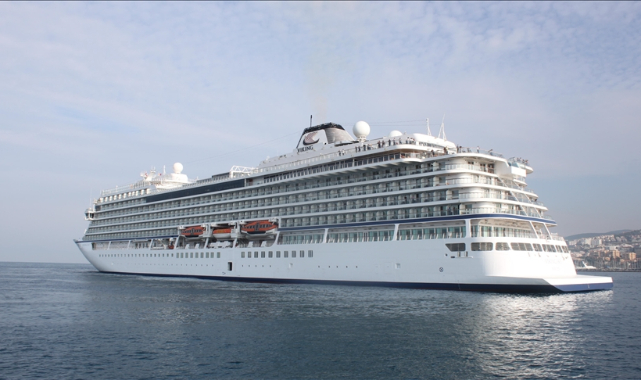 Norveç bayraklı Viking Sky isimli kruvaziyer, çoğunluğu ABD ve İngiltere uyruklu 351 yolcusuyla Ege Port Limanı'na yanaştı.