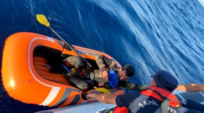 Lastik botta mahsur kalan göçmen kurtarıldı