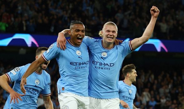 Avrupa futbolunun kulüp düzeyindeki en önemli turnuvasının yarı final rövanşında, ilk maçta 1-1 berabere kalan takımlardan İngiltere temsilcisi Manchester City, İspanya'nın Real Madrid takımını Etihad Stadı'nda ağırladı.Polonyalı hakem Szymon Marciniak'ın yönettiği karşılaşmaya üst üste ataklarla başlayan ev sahibi ekip, Rodri, Jack Grealish, Kevin De Bruyne ve Erling Haaland ile ilk dakikalarda yakaladığı gol pozisyonlarını değerlendiremedi.Baskısını artıran City'de De Bruyne'ün ara pasıyla ceza sahası sağ çaprazda topla buluşan Bernardo Silva, plase bir vuruşla meşin yuvarlağı sağ köşeden ağlarla buluşturarak 23. dakikada takımını 1-0 öne geçirdi.Oyuna ortak olmaya çalışan Real Madrid'de ceza saha dışında meşin yuvarlakla buluşan Toni Kroos'un 35. dakikada yaklaşık 30 metreden sert vuruşunda top, üst direkten döndü.Manchester City'de ceza sahasına çalımlarla giren İlkay Gündoğan'ın sert şutunda defanstan dönen top, kale önündeki Bernardo Silva'ya yöneldi. Portekizli oyuncu, düzgün bir kafa vuruşuyla kendisinin ve takımının ikinci golüne 37. dakikada imza atarak, ilk yarının skorunu belirledi: 2-0.De Bruyne'ün sol kanattan kullandığı serbest vuruşta topa iyi yükselen Manuel Akanji'nin kafa vuruşu, Real Madridli savunma oyuncusu Eder Militao'ya çarparak yön değiştirdi ve ağlarla buluştu. Brezilyalı oyuncunun kendi kalesine attığı golle City, rakibi karşısında 3-0 öne geçti.City'de oyuna sonradan giren iki oyuncudan Phil Foden'ın ara pasıyla kaleciyle karşı karşıya kalan Arjantinli Julian Alvarez, teknik bir vuruşa topu 90+1. dakikada filelere gönderdi ve takımının sahadan 4-0 galip ayrılmasını sağladı.14 kupayla Şampiyonlar Ligi tarihinin en başarılı takımı Real Madrid'i eleyen Manchester City, 2021 yılının ardından turnuvada ikinci kez son iki takım arasına kaldı. İngiltere ekibi, İstanbul'da Atatürk Olimpiyat Stadı'nın ikinci kez ev sahipliği yapacağı finalde, 10 Haziran Cumartesi günü İtalya ekibi Inter ile karşılaşacak.