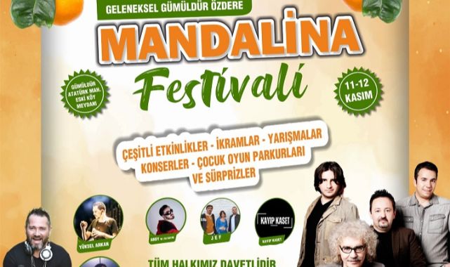 Menderes Belediyesi tarafından Geleneksel Gümüldür-Özdere Mandalina Festivali 11-12 Kasım tarihleri arasında Gümüldür Eski Köy Meydanı’nda yapılacak. 2 gün boyunca mandalinaya dair her şeyin yer alacağı festival renkli görüntülere sahne olacak.