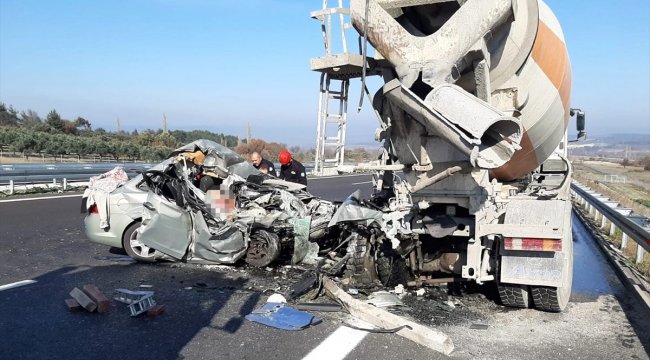 Manisa'da beton mikserine arkadan çarpan otomobildeki yaşlı çift hayatını kaybetti
