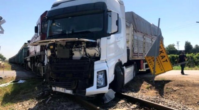 Manisa'da tren tıra çarptı, kimsenin burnu kanamadı