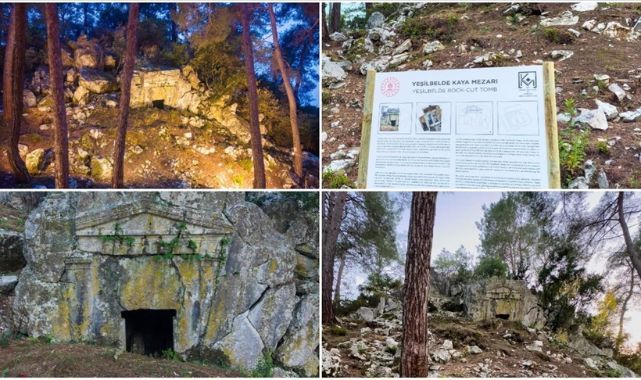 Yeşilbelde Mahallesi'ndeki "Korunması Gerekli Kültür Varlığı" olarak tescillenen Yeşilbelde Kaya Mezarı’nda, Marmaris Ticaret Odası (MTO) destekleriyle Muğla Sıtkı Koçman Üniversitesi Arkeoloji Bölümü Öğretim Üyesi Doç. Dr. Mehmet Gürbüzer'in danışmanlığında ve Marmaris Müze Müdürlüğünün denetiminde bitki örtüsü temizliği, çevre düzenlemesi yapıldı.Güvenlik şeridi oluşturulan alana, uyarı ve bilgilendirme tabelaları ile aydınlatma ve kamera sistemleri de yerleştirildi.MTO Yönetim Kurulu Başkanı Mutlu Ayhan, Marmaris'in kültürel varlıklarının korunması ve turizme kazandırılmasının yanında geleceğe de aktarılması için çalışmalarının devam edeceğini söyledi.Oda olarak kültürel çalışmaların içinde olmaktan mutlu olduklarını belirten Ayhan, "Çalışmalarımız bir nevi kültürel zenginliğimizin de bir parçası. Bu süreçte çalışmalara katkı sunan Marmaris Müze Müdürümüz Şehime Atabey'e, Orman İşletme Müdürümüz Gökhan Şahin'e ve Doç. Dr. Mehmet Gürbüzer ile kıymetli ekibine teşekkür ederiz. Marmaris Ticaret Odası olarak, kültürel mirasımızı korumak ve gelecek kuşaklara aktarmak için çalışmaya devam edeceğiz." dedi.Karia ve Lykia'da yaygın görülen tapınak cepheli kaya mezar mimarisinin Marmaris'teki tek örneği olan yapı, İyon düzeni örneklerinden farklı olarak Dor düzenindeki mimarisiyle dikkati çekiyor. M.Ö. 4-5. yüzyıla tarihlendiği değerlendirilen tek odalı anıt mezarda, zeminin zayıf yapısı ve 1957 Fethiye depremine ilişkin bulgular nedeniyle, "ziyarete açma" odaklı planlanan proje revize edilerek öncelik korumaya verildi.