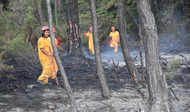 Ekipler, rüzgarın etkisiyle hızla büyüyen yangını kontrol altına almak için yoğun çaba sarf ediyor.Bölgeye gelen vatandaşlar da yangın söndürme tüpleri ile alevlere müdahale etti.