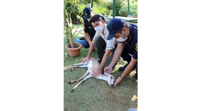 Manisa'da Spil Dağı Milli Parkında devriye görevi yapan jandarma personelinin bulduğu yaralı karaca yavrusu, tedavisi yapılmak üzere Doğa Koruma ve Milli Parklar (DKMP) Müdürlüğü teslim edildi.