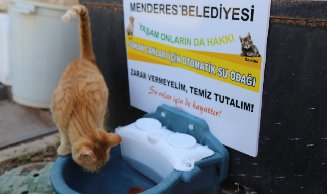 Menderes Belediyesi Veteriner İşleri Müdürlüğü tarafından sürdürülen çalışmalar kapsamında ilçe genelinde bulunan parklara sokak hayvanları için su odakları yerleştiriliyor. Başta köpek, kedi ve kuş olmak üzere tüm hayvanların su içmesi için yapılan odaklar, su bittikçe otomatik olarak doluyor.