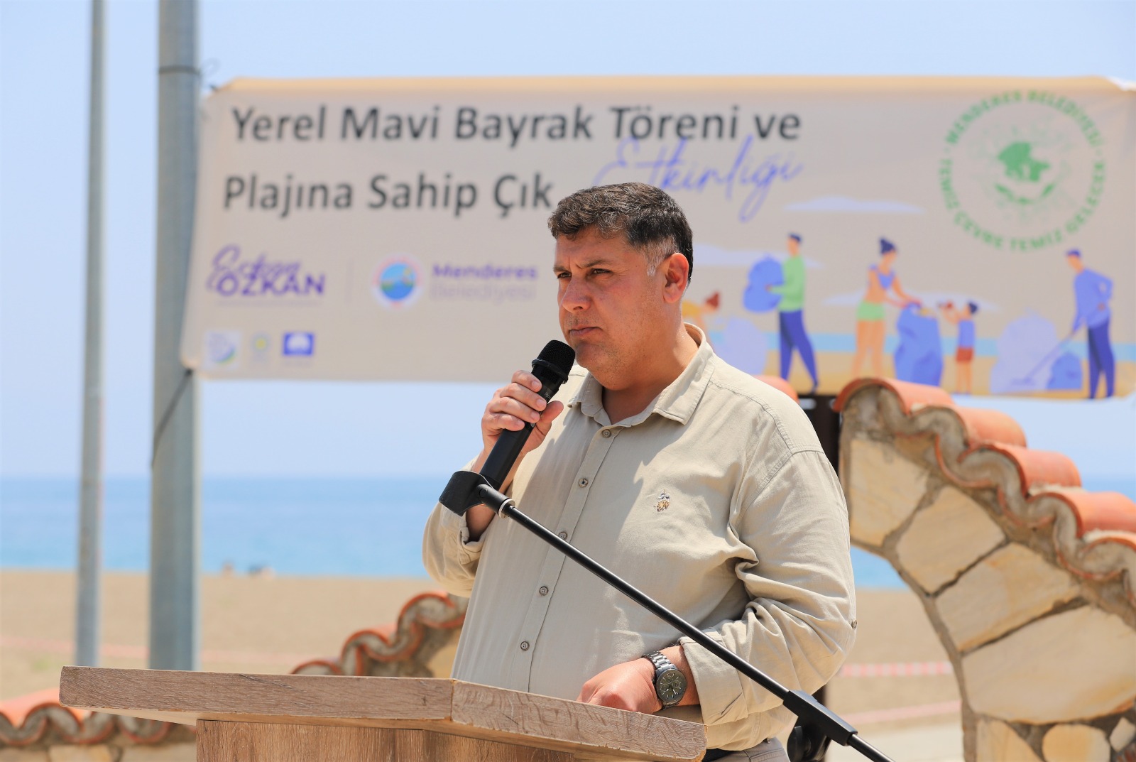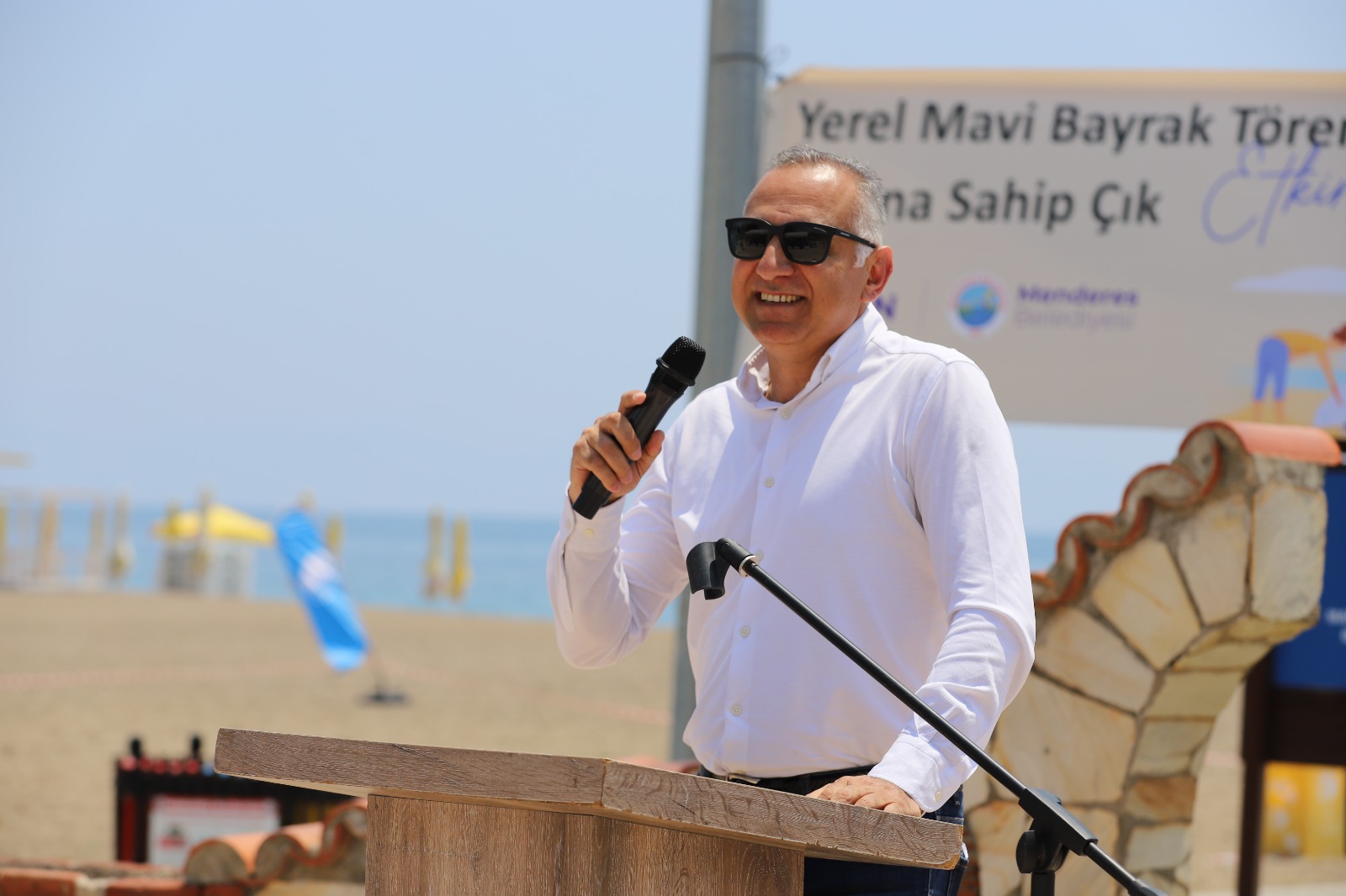 Etkinlikte konuşan Menderes Belediye Başkan V. Erkan Özkan, ilçe sınırları içerisinde toplam 11 adet mavi bayraklı plaj olduğunu belirterek. ‘’ Turizmin cenneti Menderes’imizin sahillerinde gerekli tüm çalışmaları gerçekleştiriyoruz. Yaptığımız çalışmalarımızın bir sonucu da almaya hak kazandığımız mavi bayraklarımız. Bu plajlarımızın mavi bayrak sürekliliğini korumanın yanı sıra yeni mavi bayrakları da ilçemize kazandırma hedefimiz var. Bunun için de canla, başla çalışıyoruz. İnşallah gelecek yıllarda bu sayıyı çok daha yukarılara çekeceğiz. Çünkü turizmin kalbi olan sahil bölgemiz her şeyin en iyisine layık’’ dedi.