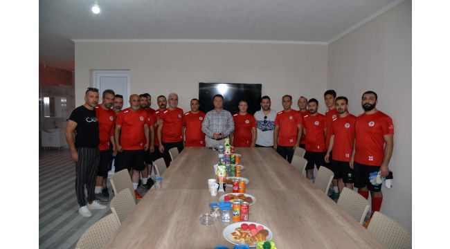 Emiralem Spor Kulübü Başkanı İrfan İlhan’ın Başkan Aksoy’a forma hediye etmesi,