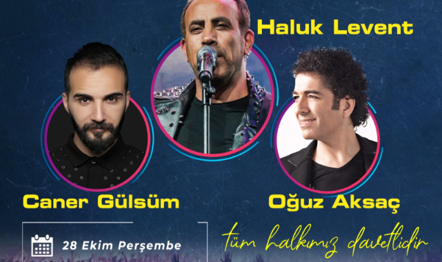Menemen’de Cumhuriyet coşkusu konserlerle zirveye çıkacak. 28 Ekim Günü saat 19.00’da Kent 2 Kapalı Pazar Yeri önünde sanatçılar Caner Gülsüm, Oğuz Aksaç ve Haluk Levent en güzel şarkılarını Menemenlilerle birlikte söyleyecek.