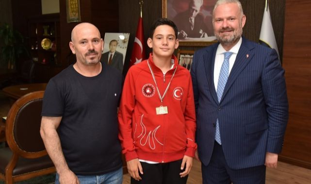 Menemen Belediye Başkan Vekili aydın pehlivan da gösterdiği üstün başarıdan dolayı Adar Kalay’ı tebrik ederek alnından öptü. Genç sporcuyla ve babası Gökhan Kalay ile sohbet eden Pehlivan, “Başarın bizi çok duygulandırdı ve gururlandırdı. Bizlere üstün başarılarınla ne kadar özel bir çocuk olduğunu gösterdin. Çok çalışacağından ve Dünya Şampiyonu da olacağından şüphe duymuyorum. Bizler Menemen Belediyesi olarak hep yanında olacağız” diye konuştu.