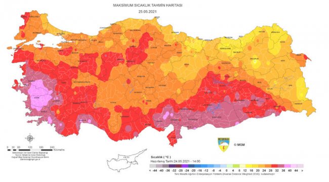 İzmir ve Aydın'da hava sıcaklığının 40 dereceye yaklaşması bekleniyor. İzmir'de genelde Mayıs ayı ortalama sıcaklığı 25 derece civarındayken şu anda ortalamanın yaklaşık 10 derece üzerinde bir hava sıcaklığı var. İzmir'de yarın bu sıcaklığın 36 dereceye çıkması öngörülüyor. Sıcaklık haritasında mor renkle gösterilen Aydın'da ise 40 derece sıcaklık bekleniyor. Bunun en büyük nedeni de Kuzey Afrika'dan gelen sıcak hava dalgası... Cuma gününe kadar bu hava sıcaklıkları mevsim normallerinin üzerinde seyredecek.