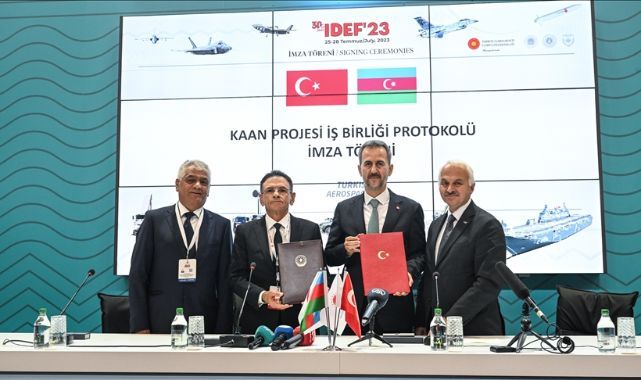 Cumhurbaşkanlığı Savunma Sanayii Başkanlığı (SSB) şahitliğinde, Azerbaycan Savunma Bakanlığı ve TUSAŞ AŞ arasında Milli Muharip Uçak Geliştirme İş Birliği İmza Töreni 16. Uluslararası Savunma Sanayii Fuarı IDEF'te gerçekleştirildi.Protokol ile Türk Hava Kuvvetleri için geliştirilmekte olan 5. nesil Milli Muharip Uçak KAAN'ın geliştirme faaliyetleri de dahil olmak üzere Azerbaycan ile ortak üretim konularındaki iş birliğinin çalışma usul ve esaslarının belirlenmesi hedefleniyor.Protokol aynı zamanda, KAAN Projesi kapsamında, Azerbaycan'da yerleşik kabiliyetlerin belirlenmesini, değerlendirilmesini, uygun değerlendirilen tesis ve/veya firmalarda üretim hazırlıklarının yapılmasını, üretim kabiliyetlerinin geliştirilmesini ve tecrübe paylaşımlarının yapılmasını amaçlıyor.Çalışma gruplarının karşılıklı ziyaret ve görüşmeleri sonrasında KAAN Projesi kapsamında bazı alt sistemlerin Azerbaycan'da üretilmesi planlanıyor.Savunma Sanayii Başkanı Haluk Görgün imza töreninde yaptığı konuşmada, Azerbaycan ile iş birliklerinin artarak devam ettiğini belirterek iki ülkenin savunma alanında da bir çok anlaşmayı birlikte yaptığını vurguladı.