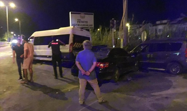 MUĞLA (AA) - Muğla'nın Fethiye ilçesinde üç aracın karıştığı kazada 10 kişi yaralandı.Recep Yöntem'in kullandığı 48 S 2780 plakalı personel minibüsü ile Cebrail Bahçi idaresindeki 48 SA 050 plakalı otomobil ve Müslüm Arslan Tosun yönetimindeki 48 F 9865 plakalı kamyonet, Foça Mahallesi Cahit Beğenç Bulvarı Cevdet Oskay Kavşağı'nda çarpıştı.Kazada sürücüler Yöntem (57) ve Bahçi (20) ile araçlarda bulunan Damla Aytaç (33), Serap Eryoruk (40), Fatma Gül Çakıroğlu (45), Sinan Kaya (27), Koray Tanış (41), Mehmet Kaan Kanat (19), Havva Kalkanlı (32), Seher Türkan Demirtaş (31) yaralandı.Yaralılar, olay yerine sevk edilen ambulanslarla ilçedeki hastanelere kaldırıldı.