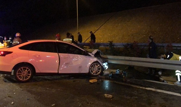 İki otomobil, otobanda yan yana giderken çarpıştı. Kazadan sonra savrularak bariyerlere çarpması sonucu demir yığını haline dönüşen otomobillerdeki 3 kişi öldü, 2 kişi de yaralandı.