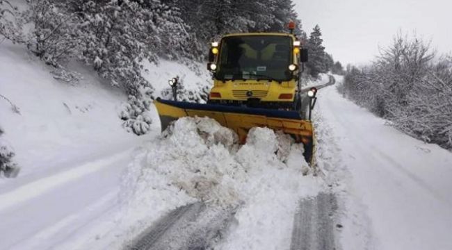 İzmir'in Ödemiş ilçesinde yüksek kesimlerde yağan karın ardından belediye ekipleri yolları açık tutmak için çalışma yürütüyor.