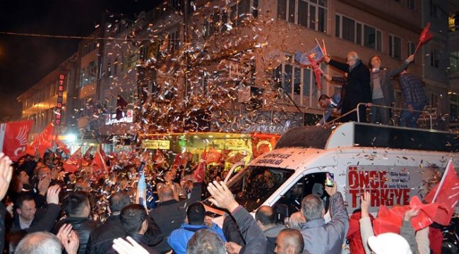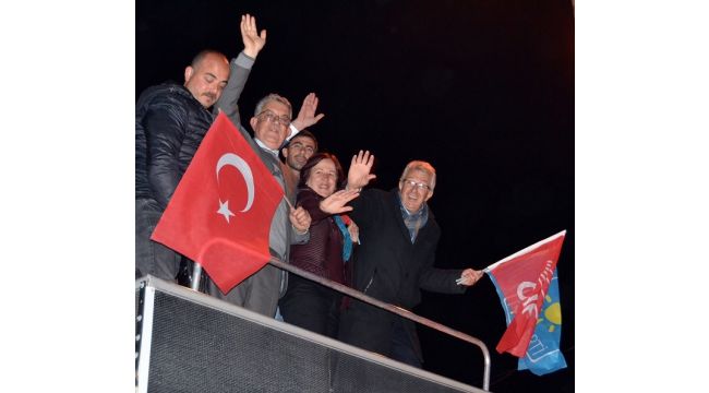 Eriş’in seçim zaferini kutlayan Ödemişliler de uzun araç konvoyları oluşturarak, havai fişekler atıldı.