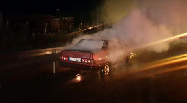 Manisa'nın Kula İlçesinde orta refüje çarpan otomobil yanarak kullanılamaz hale geldi. Kaza, saat 00.45 sıralarında İzmir-Ankara D300 karayolu Dereköy Mahallesi kavşağı mevkisinde meydana geldi. Edinilen bilgiye göre sürücüsü belirlenemeyen 45 K 2254 plakalı otomobil orta refüje çarptı. Çarpmanın etkisiyle otomobil alev alev yanmaya başladı. Kazayı görenlerin haber vermesiyle olay yerine itfaiye, jandarma ve sağlık ekipleri yönlendirildi. İtfaiye ekiplerinin müdahalesi ile otomobildeki yangın kontrol altına alınırken, otomobil kullanılamaz hale geldi. Öte yandan kaza yapan sürücünün otomobili bırakıp kaçtığı öğrenildi. Kaza sebebiyle İzmir-Ankara D300 karayolunda trafik bir süre kapalı kaldı. Yanan otomobilin yoldan kaldırılması ile karayolunda trafik yeniden ulaşıma açıldı. Kazayla ilgili soruşturma başlatıldı.
