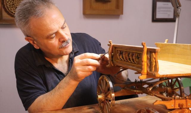 17. yüzyılda Rusya'da yaylı ve tek atlı bir araba olarak kullanılan talika, 19. yüzyılda Osmanlı'ya gelerek dönemin en yaygın ulaşım araçlarından biri haline geldi.Bugün gerçek boyutunun 1/20 ölçeğinde hazırlanan eser, geleneksel sanatlarla yeniden hayat buluyor.Pertev Aslan, AA muhabirine, yaklaşık bir ay önce başladığı çalışmada talikanın yan kanatları, söveleri ve tekerlekleri dahil birçok bölümüne naht sanatını uyguladığını söyledi.Ağaç üzerine oyularak işlenen motiflerde geleneksel tezhip desenlerini kullandığını belirten Aslan, eserin ilgi gördüğünü ifade etti.Eserin insanların duygularına hitap etmesini amaçladığını dile getiren Aslan, "Yaptığımız sanat sadece ağacın üzerinde kalmıyor. Bu çalışmayı yaparken insanların ruhuna da dokunmayı amaçlıyoruz." dedi.Motifleri ilmek ilmek işlediğini anlatan Aslan, özellikle ileri yaştaki kişilerin eseri gördüklerinde geçmişe dair anılarının canlandığını kaydetti.Talikanın birçok kişinin hayatında bir dönem kullandığı ya da gördüğü bir araç olduğunu vurgulayan Aslan, "Bu araç geçmişte hayatımızın bir parçasıydı. Günümüzde artık kullanılmıyor. Bu nedenle insanlar gördüklerinde ilgileniyor, fotoğraf çekiyor ve detaylarını incelemek istiyor." diye konuştu.Aslan, hazırlanan modelin gerçek talikanın birebir özelliklerini taşıdığını belirterek, yay sistemi ve tekerlekler dahil tüm mekanizmanın aslına uygun şekilde tasarlandığını aktardı.Tezhip desenlerini ağaca işleyen sanatçı sayısının az olduğuna dikkati çeken Aslan, "Desenlerimiz ağaçların doğal renkleriyle oluşturuluyor, herhangi bir boya kullanılmıyor. Tezhip genelde çini üzerinde boyayla uygulanır. Ben ise bunu ağaca işleyerek farklı bir yorum kazandırdığımı düşünüyorum." ifadelerini kullandı.