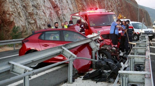Gebze-Orhangazi-İzmir Otoyolu Orhangazi yakınlarında kavşakta meydana gelen trafik kazasında bayan bir sürücünün kullandığı otomobil büyük bir hızla bariyerlere çarptı. İki kız kardeşin bulunduğu otomobilin kadın sürücüsü hayatını kaybederken, yanında bulunan kız kardeşi ise yaralı olarak kurtuldu. Kaza sabaha karşı saat 03: 30'da Gebze-Orhangazi-İzmir Otoyolu, Orhangazi Karsak Gişeleri girişinde meydana geldi. Alınan bilgilere göre Bursa istikametinden, İstanbul istikametine doğru gitmekte olan Meltem Duygulu (24) idaresindeki 34 CYL 435 plakalı otomobil Gebze-Orhangazi-İzmir Otoyolu Orhangazi Karsak Kavşağı'nda henüz belirlenemeyen bir nedenle şeritten çıkarak bariyerlere çarptı. OTOMOBİL HURDAYA DÖNDÜ Çarpmanın şiddeti ile bariyerlere ok gibi saplanan otomobilde bulunan otomobili gören diğer sürücüler durumu 112 Sağlık Ekipleri ile itfaiye ekiplerine bildirdi. Olay yerine gelen sağlık ekipleri otomobilin sürücüsü Meltem Duygulu'nun hayatını kaybettiğini belirledi. Otomobilde bulunan sürücünün kız kardeşi olduğu belirlenen Damla Duygulu (20) ise yaralı olarak araçtan çıkarılarak Orhangazi Devlet Hastanesine kaldırıldı. CESET 2 STLİK ÇALIŞMA İLE ÇIKARILDI Kazada feci şekilde can veren otomobil sürücüsü Meltem Duygulu'nun cesedi, itfaiye ve jandarma ekiplerinin yaklaşık 2 saatlik çalışması sonucu sıkıştığı yerden çıkarıldı. Meltem Duygulu'nun cenazesi, Cumhuriyet Savcısı'nın incelemesinin ardından Orhangazi Devlet Hastanesi morguna kaldırıldı. Kazada yaralanan Damla Duygulu'nun ise sağlık durumunun iyi olduğu kaydedildi. Savcılık ve Jandarma ekipleri kaza ile ilgili soruşturma başlattı. (Musa Öztürk/) Son Dakika Haberleri - Son Dakika Haber - Güncel Haberler: